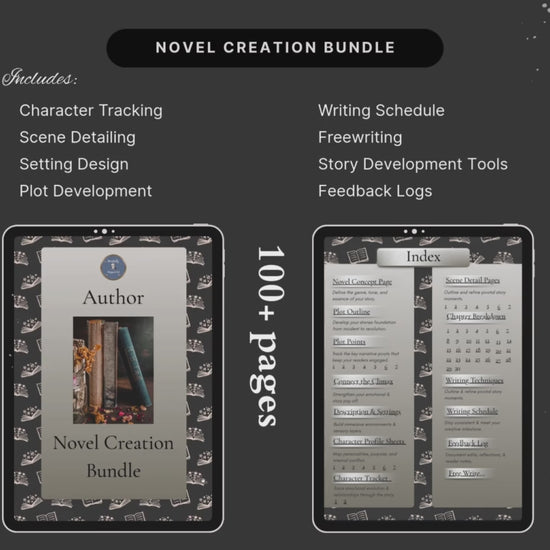 Crafted for GoodNotes, Notability, or desktop use, this all-in-one author system brings every stage of your writing process together — from character building and plot development to editing, scheduling, and creative reflection.